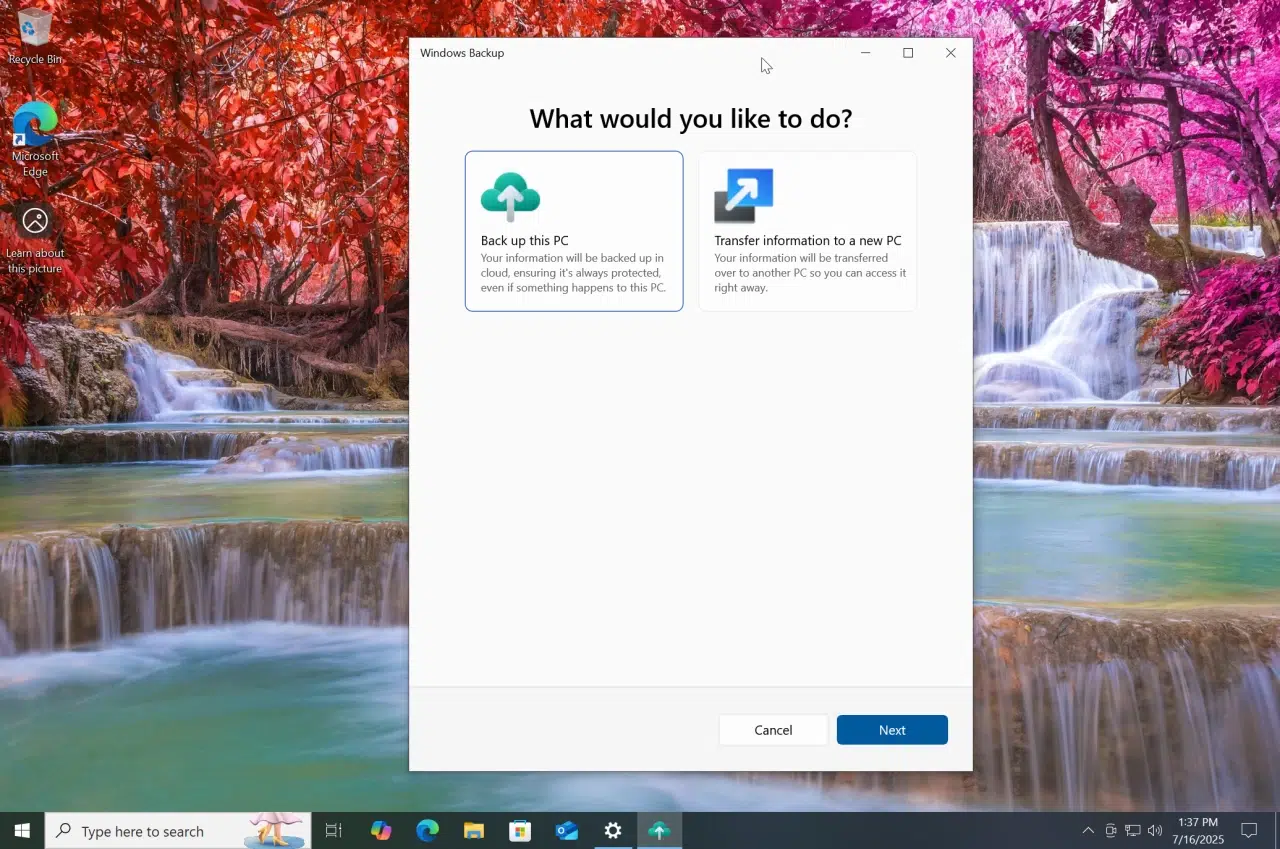 Another choice is to launch the Home windows Backup app from the Begin menu, click on “Again up this PC,” and anticipate Home windows 10 to avoid wasting your information within the cloud.