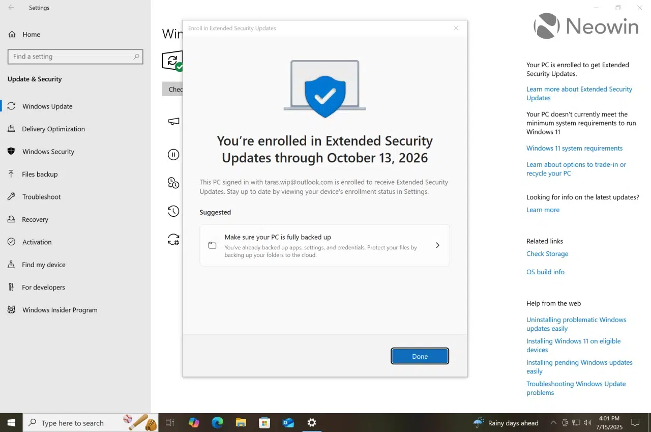 Achieved, your system is now enrolled within the Prolonged Securiуty Replace program, which grants you one yr of safety updates till October 13, 2026. After that, you might be by yourself.